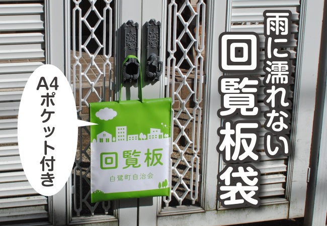雨の日でも回覧板が濡れない「回覧板袋」に門扉にかけやすい38cmの長めの取っ手、A4ポケットがついて新登場株式会社ハクロマーク製作所のプレスリリース。
