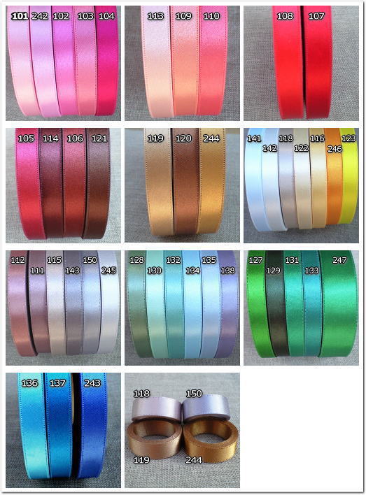 100均セリア「幅2cmサテンリボン」の商品一覧・カラー。長さは2mで100円。