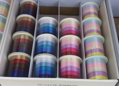 Gift ribbonsSatin ribbon blue colorful サテンリボン ブルーDaiso Canada co.,ltd。