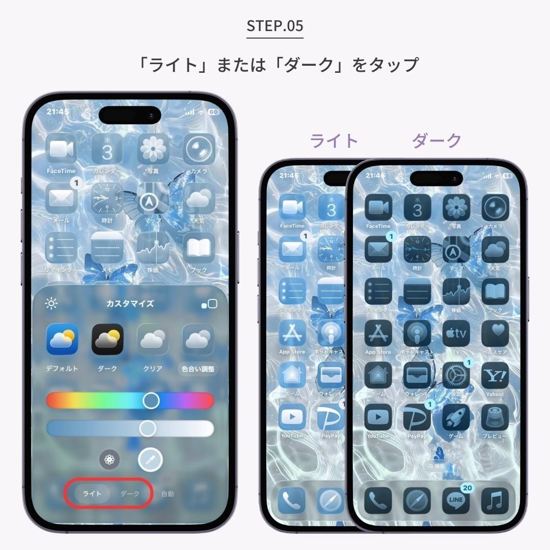 iOS18でホーム画面のアプリアイコンの色を変える方法 iPhone。