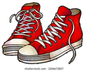 赤いスニーカーブーツのイラスト無料のフリー素材 イラストエイト。