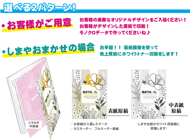 表紙を開けば、そこは洒落た中表紙がホワイトトナー印刷だった フェア 同人誌印刷会社なら・初めての人“にも”優しい同人誌印刷所「しまや出版」。