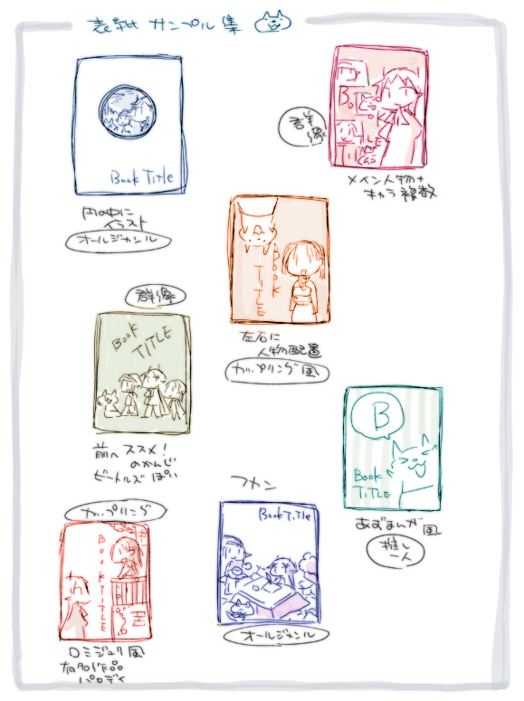 同人誌表紙デザイン」5案作ってみた!絵・タイトルが同じでも、オーダー内容でデザインは変わる!ミズアコ。