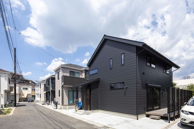スプリームウッドとシャドーラインを組み合わせた金属外壁昭和ルーフリモ株式会社。