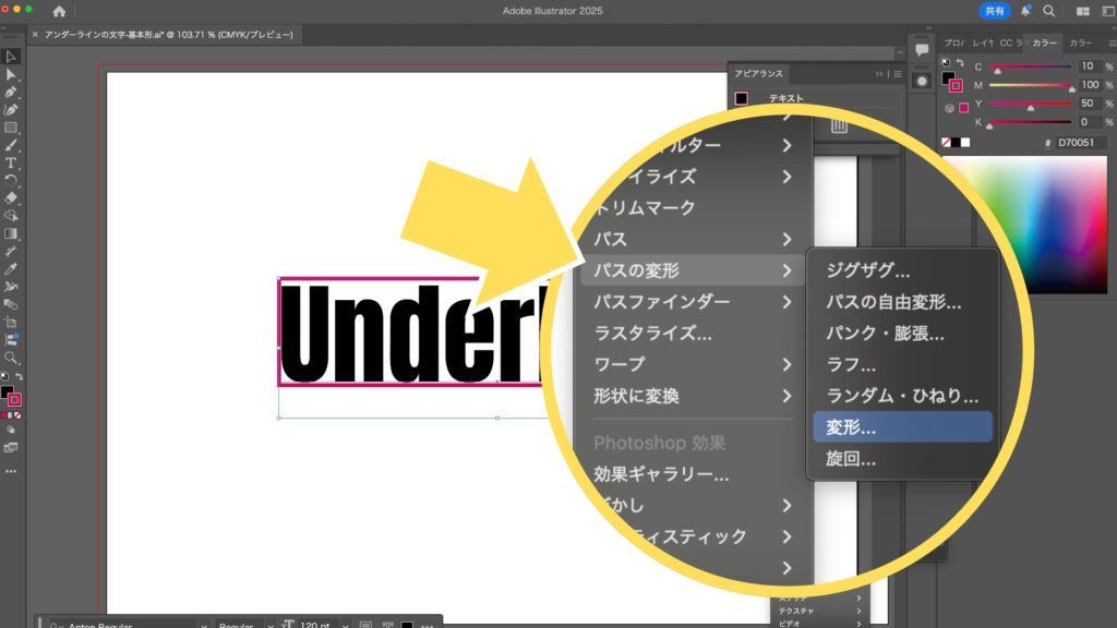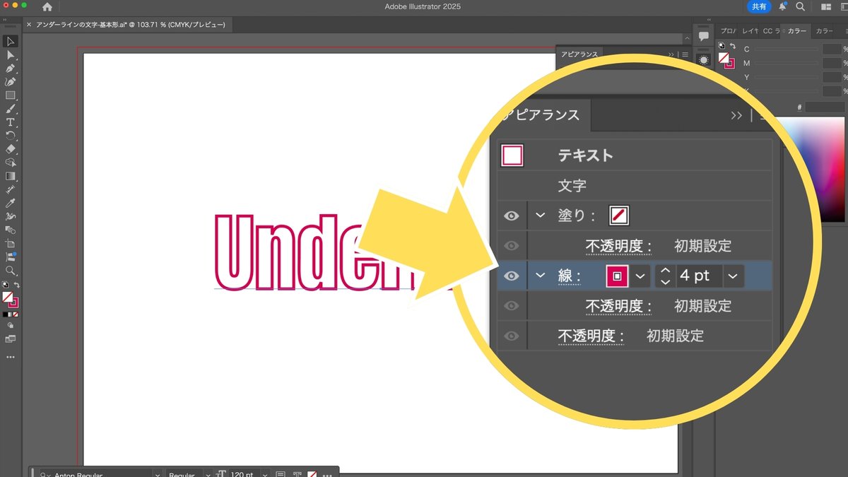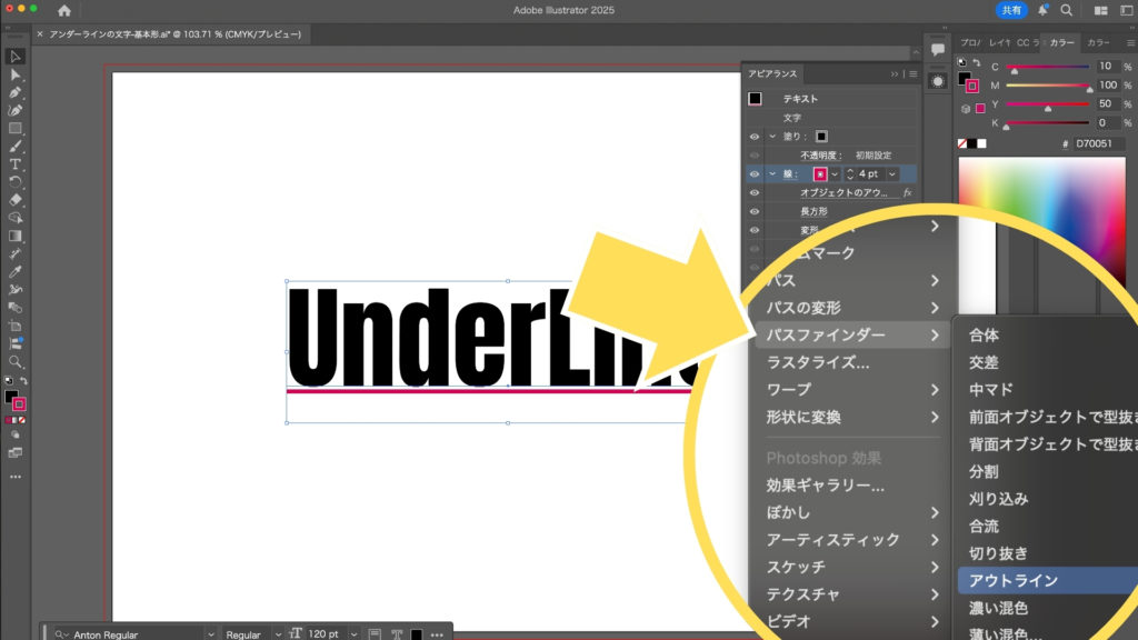 アンダーラインの文字を作成する方法 Illustrator。