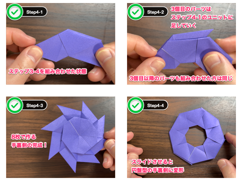 折り紙の手裏剣の折り方!4枚でかっこいい作り方を紹介セツの折り紙処。