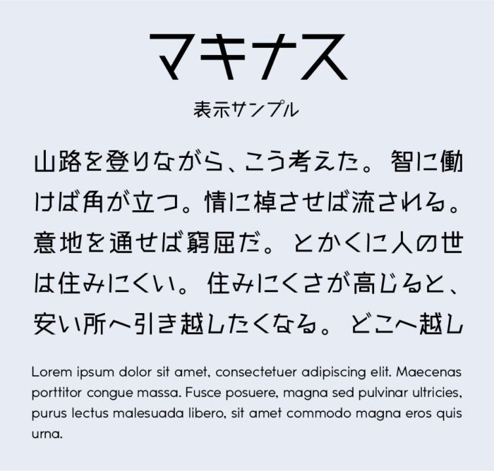 フリー素材都会チックで田舎くさいユニークな日本語フリーフォント「マキナス」。