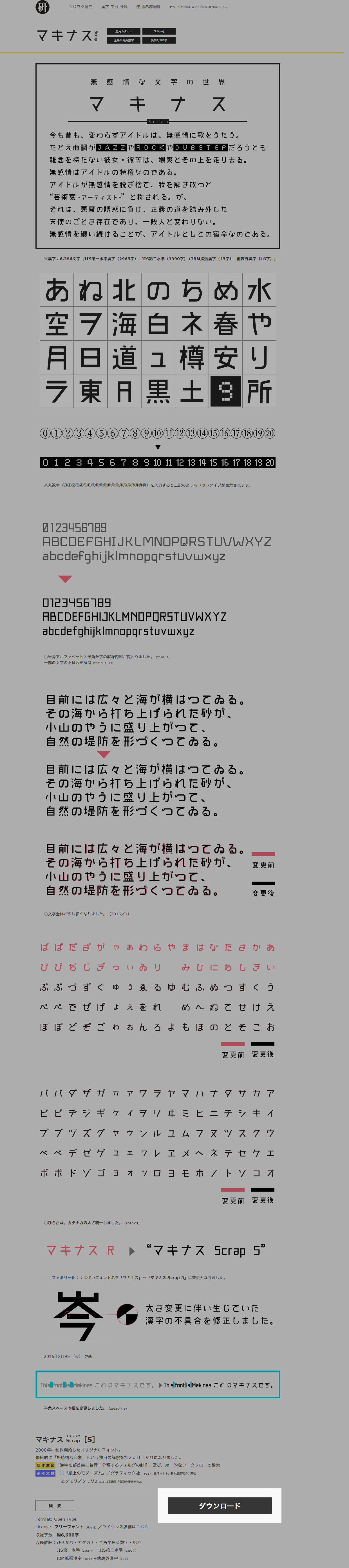 日本語フリーフォントマキナス 4 シリーズもじワク研究。