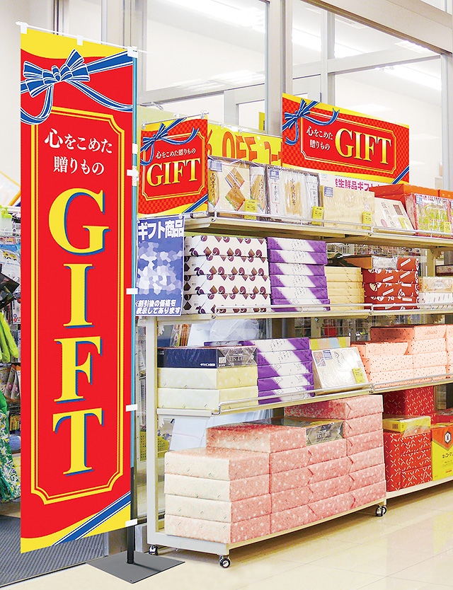 お中元売場の装飾 POPデザイン さんわコーポレーション様スズキモダン名古屋市の集客や販促に強いデザイン制作会社・事務所。