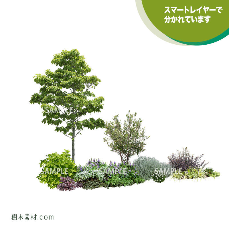 ガーデン植栽パースセット GP003_10樹木素材.com。