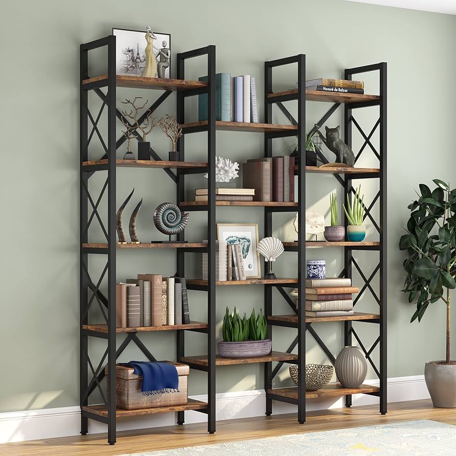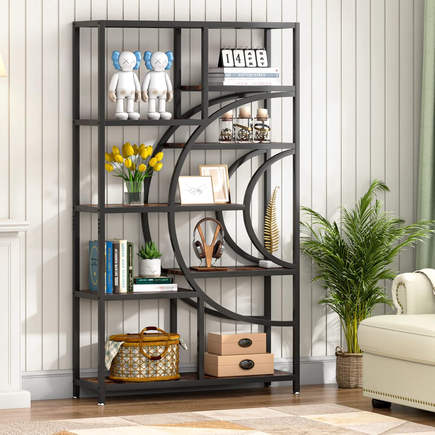 Tribesigns 本棚 インダストリアル 5段 Etagere 自立式 背の高い本棚 ディスプレイシェルフ ストレージオーガナイザー9つのオープンストレージシェルフ付き リビングルーム ベッドルーム ホーム オフィス用。