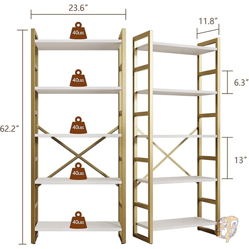 7HQAPLR 5層本棚 インダストリアルデザイン はしご棚 頑丈で組み立て簡単 収納棚 リビングルーム 寝室 オフィス用60× 5段本棚ブックシェルフ インダストリアル ブックラック 寝室 リビングルーム 自宅 オフィス用 本 映画用収納ラックゴールド Shintenchi シンテンチ。