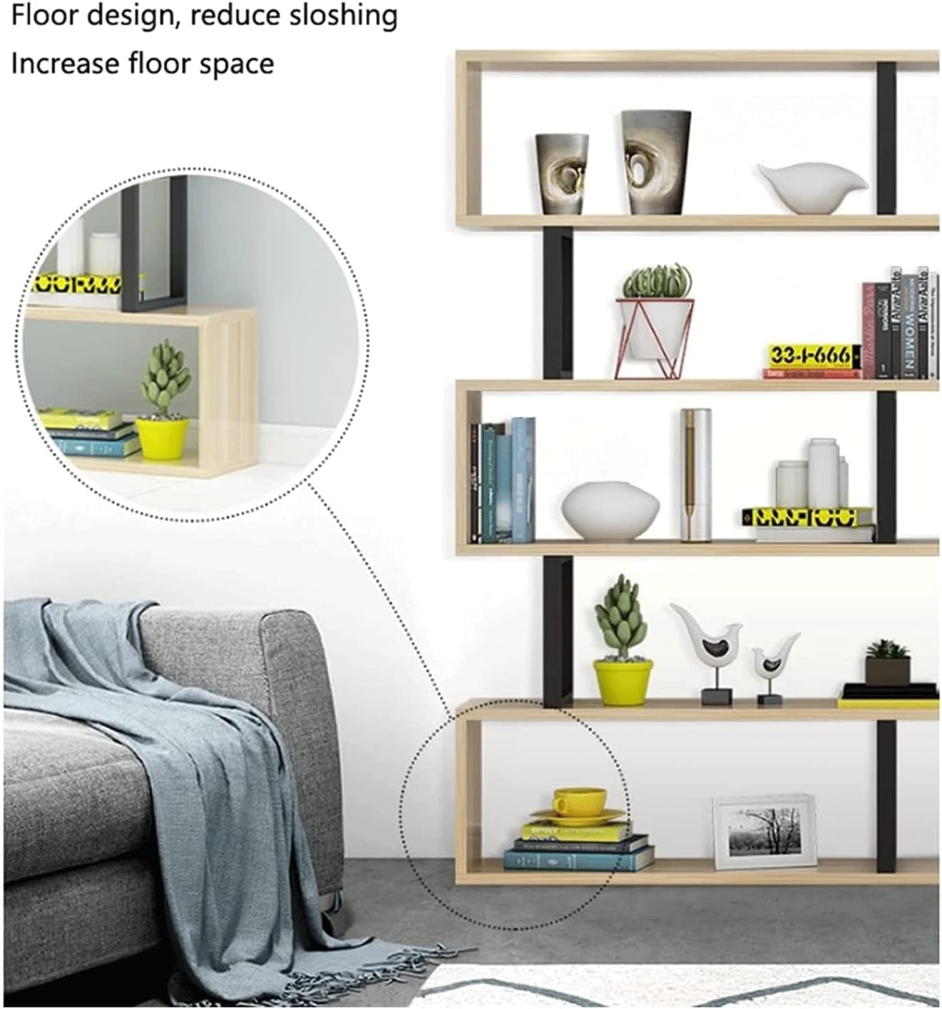 MoFein モダン 木製 5 段 本棚 インダストリアル ラージ オープン 調節可能 ブックケース ヴィンテージ 収納キャビネッ キャビネット幅60cm 高さ120cm ヴィンテージ調 スリムオープンラック 棚 ラック 収納 家具 ディスプレイ 木目調 リビング収納 可動棚 奥行。