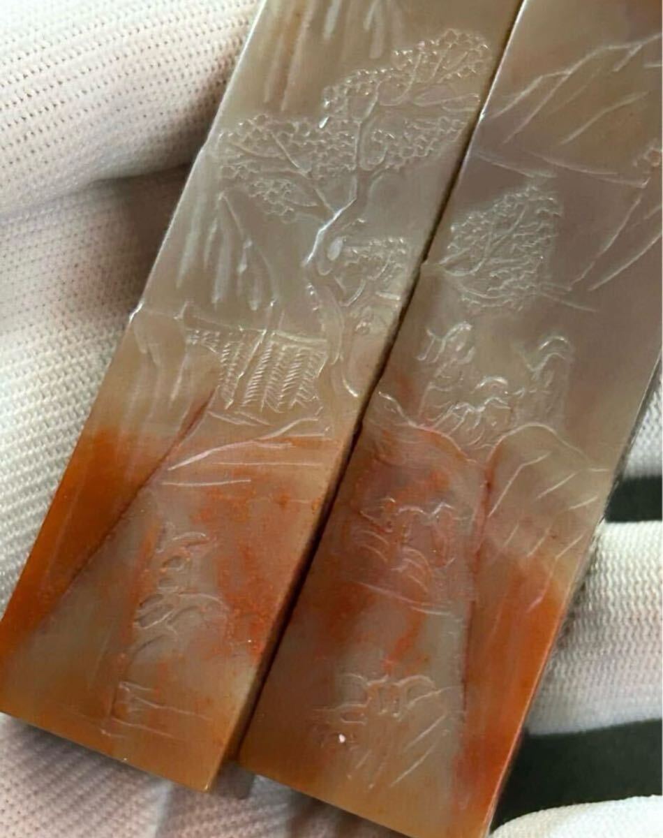 高級印材 極上芙蓉石 象印鈕対章 芙蓉石 印材 寿山石 篆刻 正一。