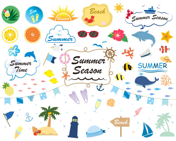 夏デザイン 1 - イラストレーションのベクターアート素材や画像を多数ご用意 - イラストレーション, 夏, 海 - iStock。