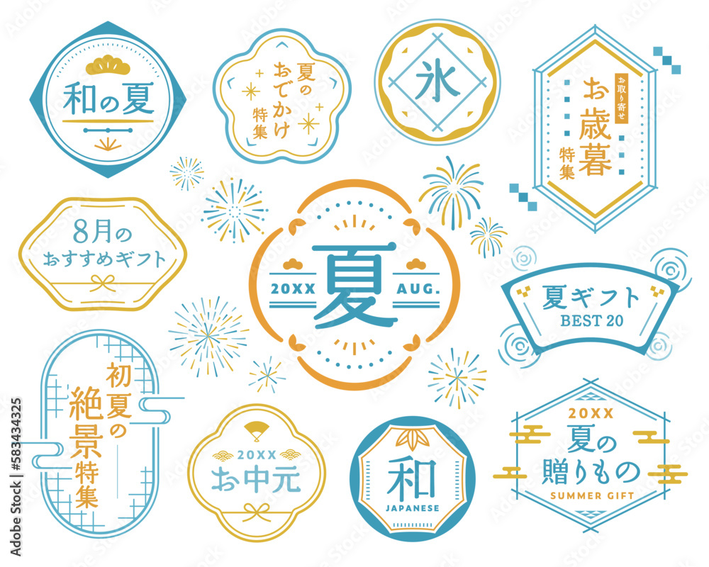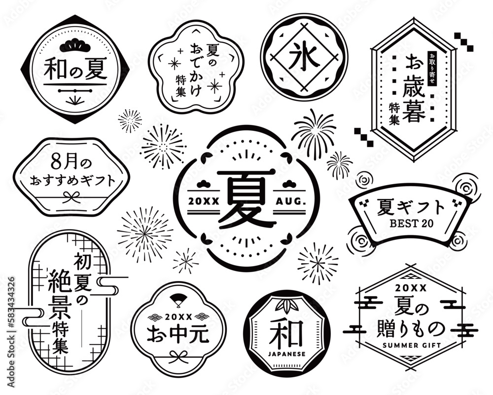 夏のおしゃれな和風デザイン素材セット03イラスト - No: 2594208無料イラスト・フリー素材なら「イラストAC」。