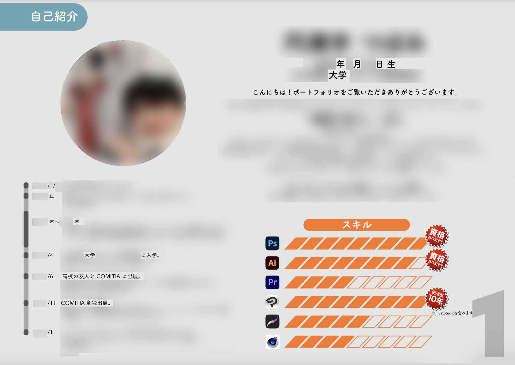 入門 はじめて作るポートフォリオの「自己紹介」 書き方とデザイン・レイアウトの参考例をご紹介- めがねんちblog。