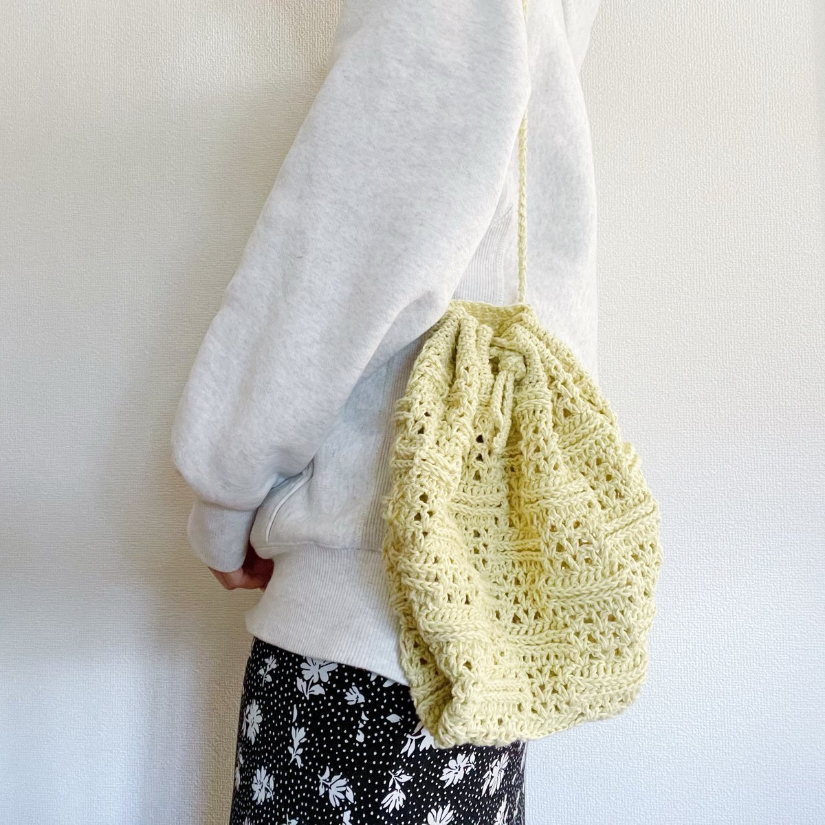 かぎ針編み 夏の巾着バックの編み方 - おばちゃんでもできる。
