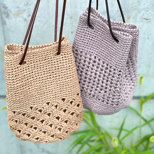 かぎ針編み 巾着バッグ ナチュラル コットンラフィア - ATELIER YANMIminne byGMOペパボ国内最大級のハンドメイド・手作り通販サイト。