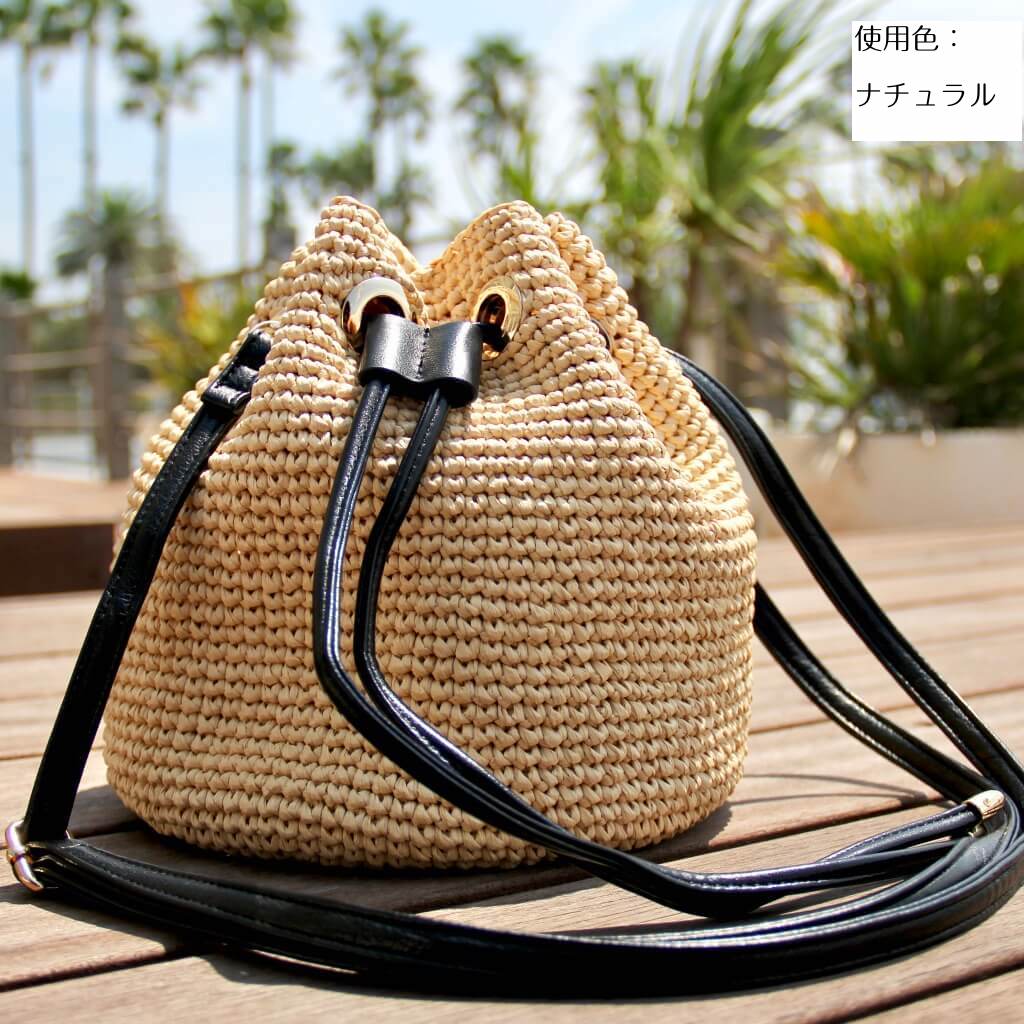 楽天市場 シンプル巾着バッグ キット キット 手芸 編み物 手編み ラフィア バッグキット 編み図 レシピ 初心者 レディース 巾着:コットンラフィア 楽天市場店。