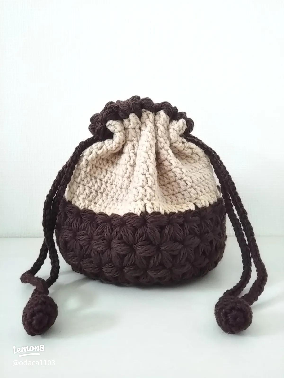 手編み巾着ポシェット かぎ針で編む巾着バッグ6選 簡単に作れる編み方動画。