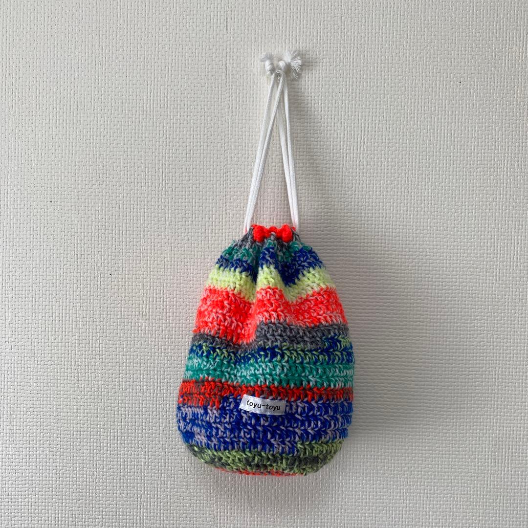 マルチカラー巾着バッグ、かぎ針編み小銭入れ、ハンドメイド、糸バッグ - ショップ SasideniCrochet ナップサック - Pinkoi。