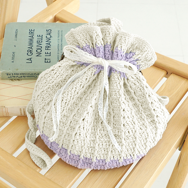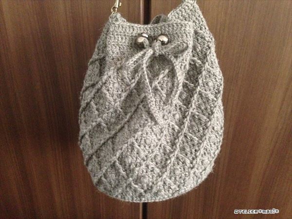 かぎ針編み図 ダイヤ模様の巾着バッグ – 手編みウェア&雑貨の無料編み図 ATELIER *mati*。