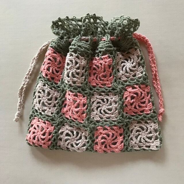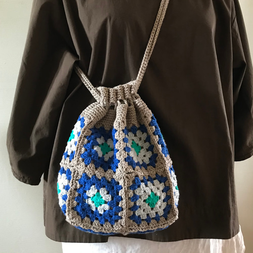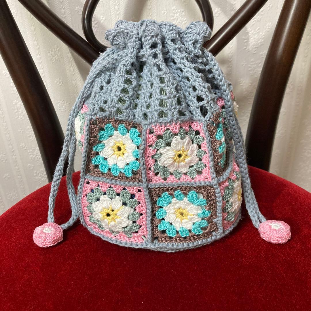 かぎ針編み 巾着バッグ 巾着袋 グラニースクエア - メルカリ。