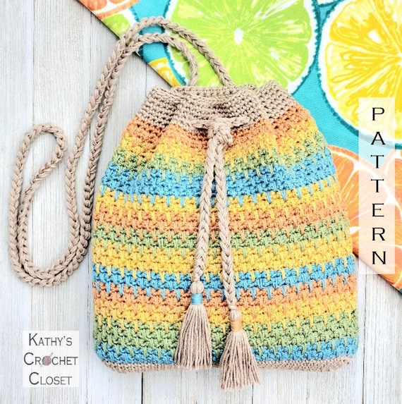 かぎ針編みバッグのパターン - サマースライス巾着バッグ - DIY かぎ針編みバッグ - かぎ針編みクロスボディバッグのパターン -かぎ針編み巾着バッグのパターン - Etsy 日本。