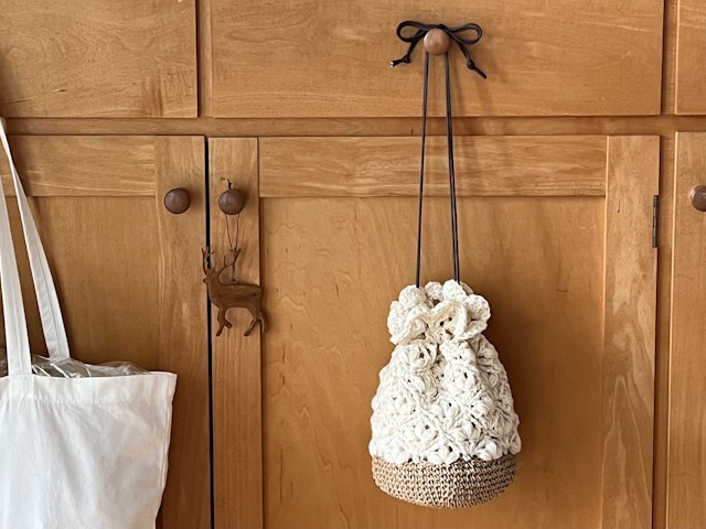 買い物や編み物のおともにピッタリ!ころんとかわいい巾着バッグ手編みのお店 hus: フース編み物コラムにて編み図・手芸・毛糸の情報配信。