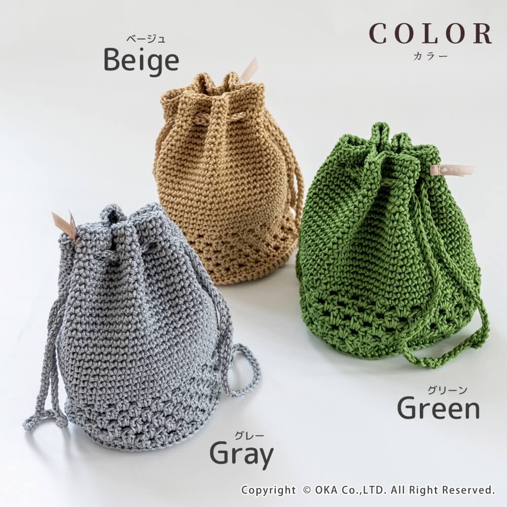 受注生産 かぎ針編み 巾着バッグ グレー コットンラフィア 巾着バッグ YANMI 通販 12349273Creema クリーマ。
