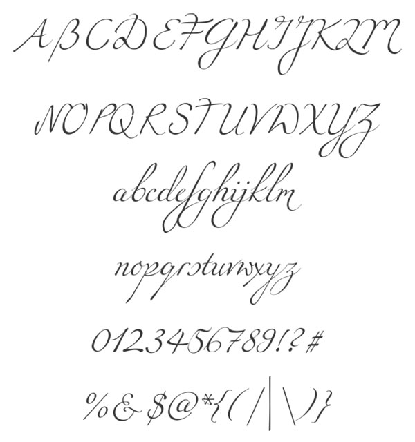 無料素材なめらかなラインがエレガントな筆記体フォント。大文字・小文字・数字・記号。