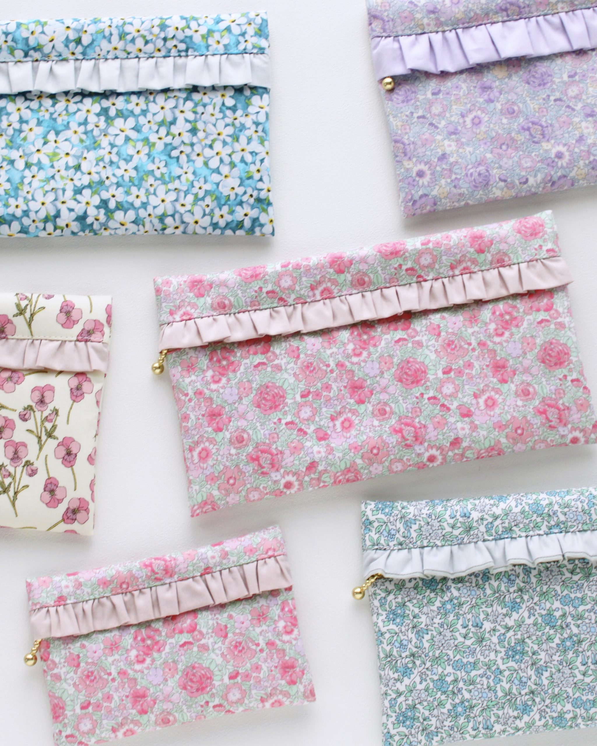 ハンドメイドフリルでファスナーが隠れる通帳ポーチ 簡単なフラットポーチ千尋のハンドメイド布小物レシピ。