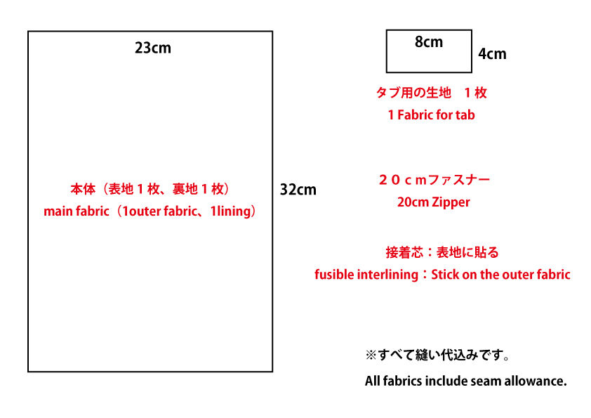 マチ針いらずのファスナーポーチ 無料型紙ダウンロードNUNOTOIRO。