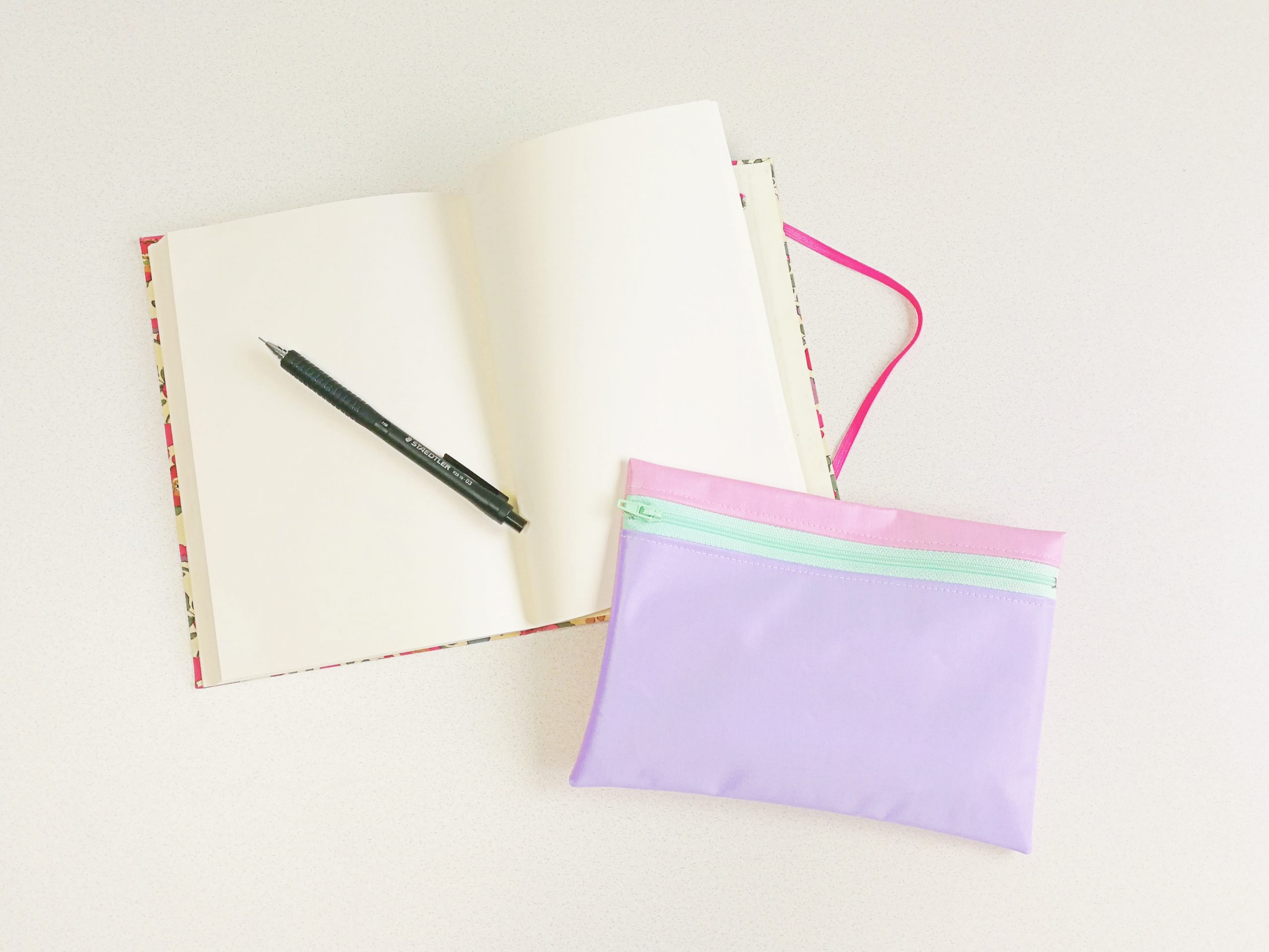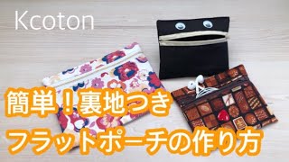 1枚仕立てなのに裏地付き好きな大きさで作れる簡単! フラットポーチの作り方 ペンケースとしても使える簡単ポーチの作り方。