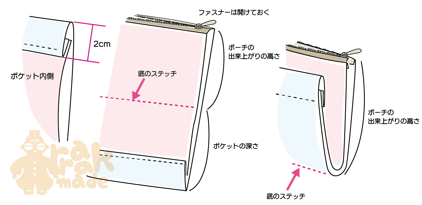 丸底な簡単フラットポーチの作り方 手順4ポーチバッグ・財布・小物 アトリエハンドメイドレシピ 作り方 と手作り情報サイト。