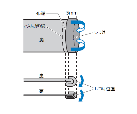 家庭用ミシンで裾をまつり縫いする方法一枚の布から。