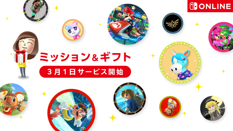 好きなキャラクターでユーザーアイコンをカスタマイズ。本日より「Nintendo SwitchOnline」加入者向けに「ミッション&ギフト」がスタート。トピックスNintendo。