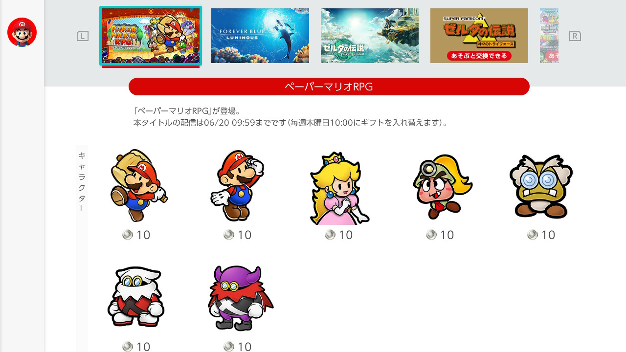 キャラクターを選んで、Nintendo Switchのユーザーアイコンを自分好みにアレンジ。これまで配布したアイコンパーツも日替わりで再登場。トピックスNintendo。