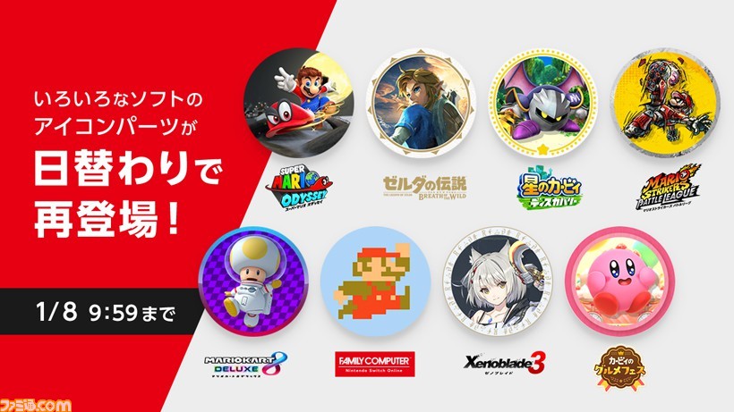 好きなキャラクターのアイコンを作ってみませんか? これまで配布したアイコンパーツも日替わりで再登場。トピックスNintendo。