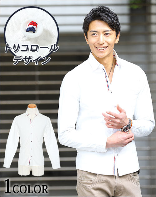 前立てトリコロールデザイン長袖シャツメンズファッション通販 MENZ-STYLE メンズスタイル。