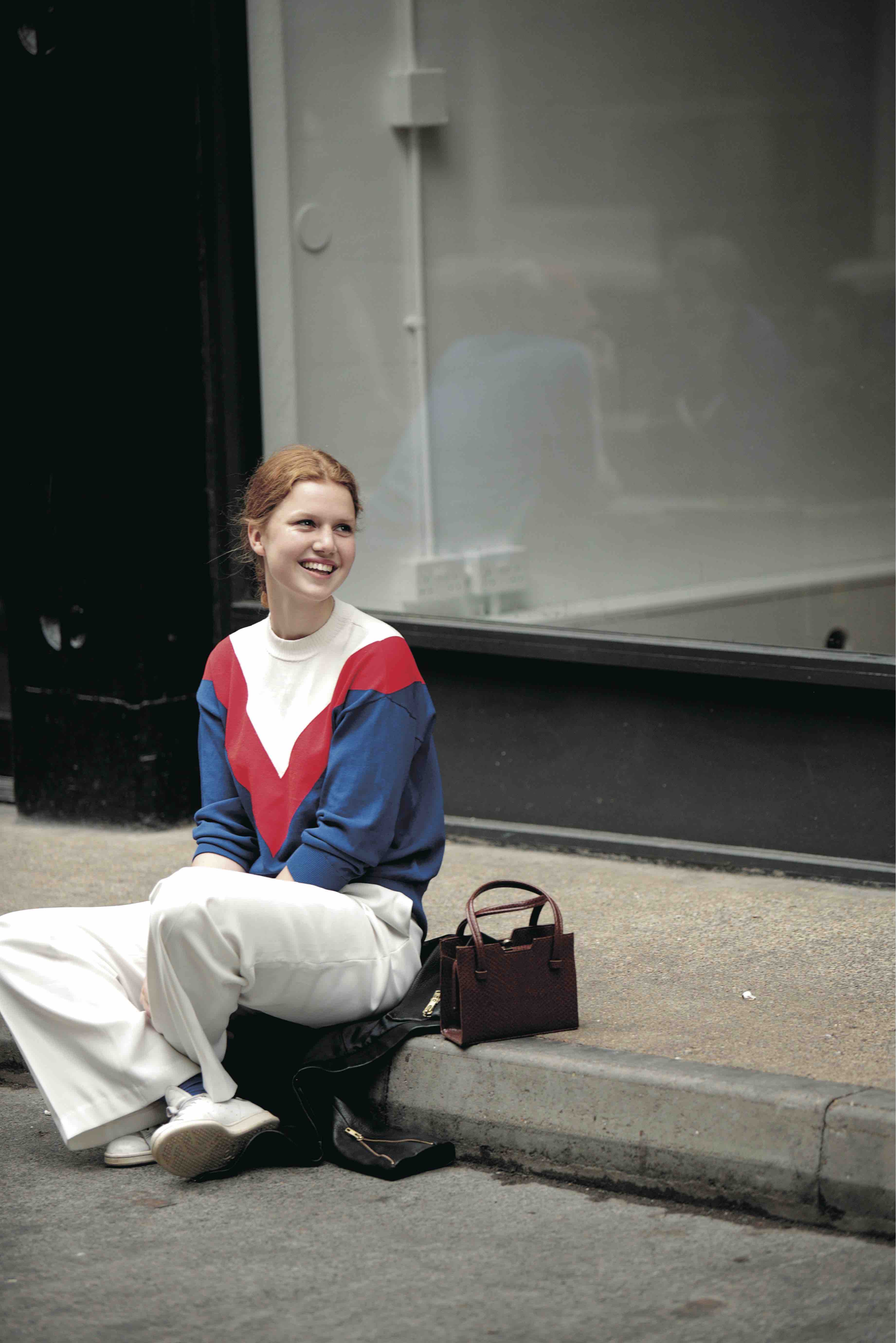 トリコロールデザインのトップスがかわいすぎる!シンプルなのに印象的なコーデLONDONワールドスナップFUDGE.jp。