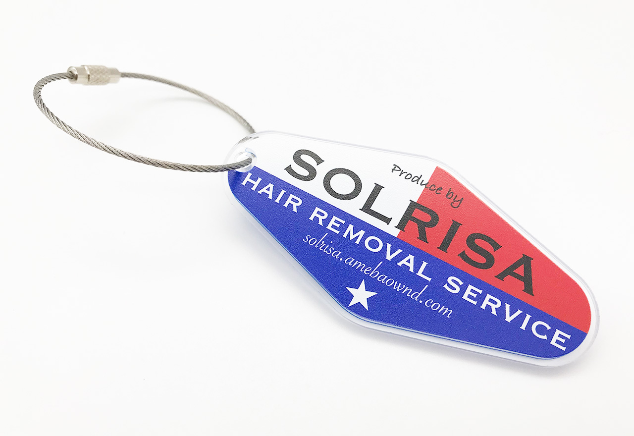 トリコロールの配色が印象的なデザインのモーテルキーオリジナルグッズ製作・OEMの専門店 – ジェイアンドシーサプライ。