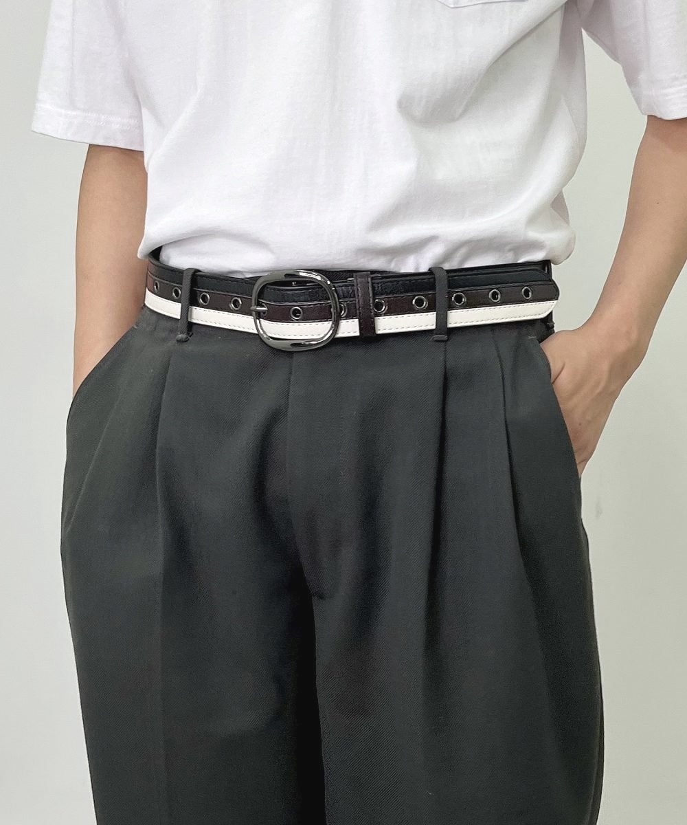 トリコロールデザインクロップドパンツ×編み込みメッシュベルト 2点セットMENZ-STYLE Yahoo!ショッピング店。