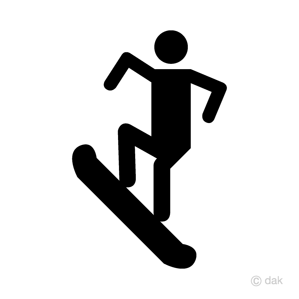 スノーボードでジャンプする人のピクトグラムイラストのフリー素材イラストイメージ。