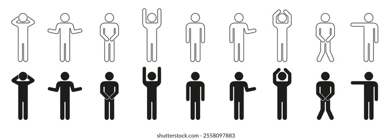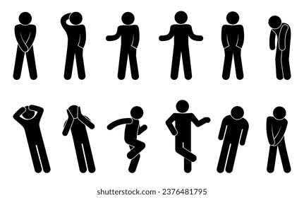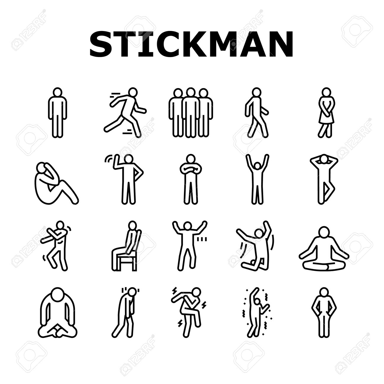 棒人間人のシルエットアイコンセットベクター画像。ピクトグラム 人間, 棒人間, フィギュア 姿勢, 体位 男性 キャラクター 動き 棒人間 人 人シルエット 黒 輪郭 イラストのイラスト素材・ベクター Image 195957823。