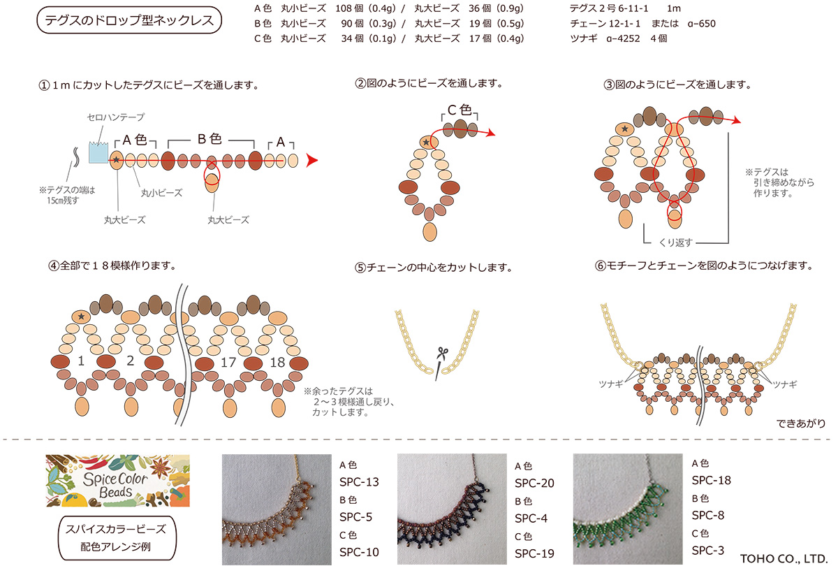 シュゲールビーズレシピ特集テグスのドロップ型ネックレスス。