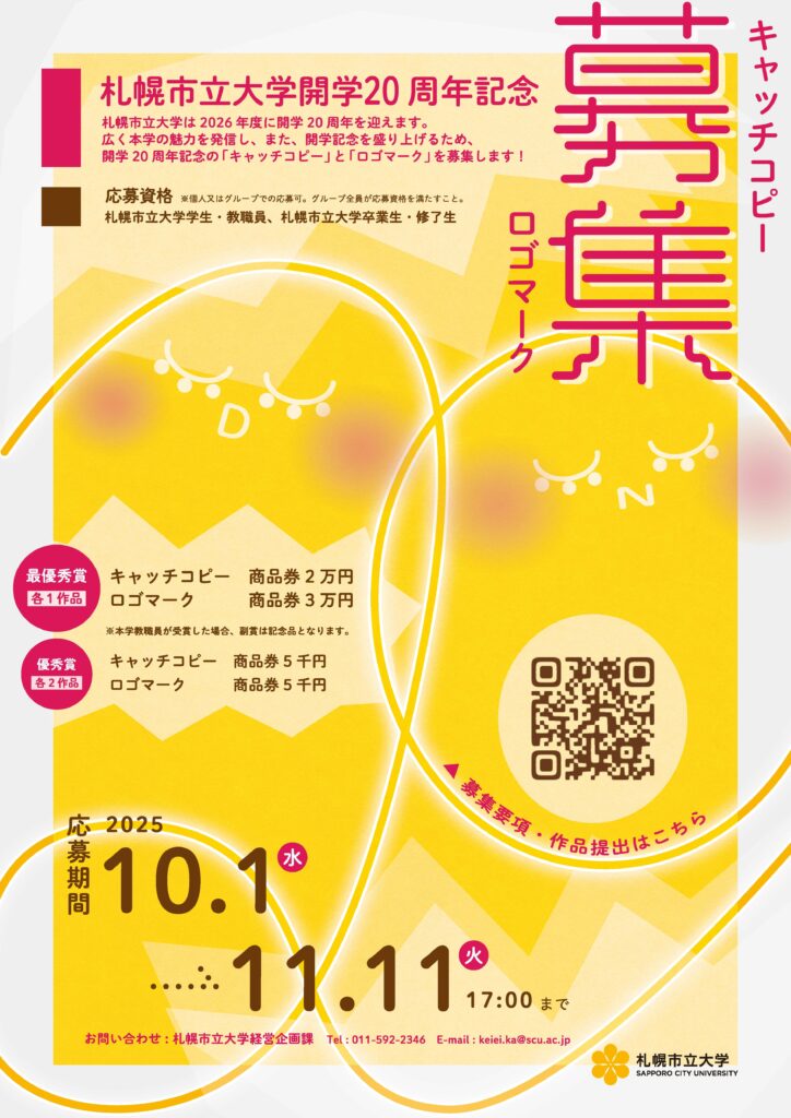 開学20周年記念 キャッチコピー及びロゴマークを募集します – 札幌市立大学 SAPPORO CITY UNIVERSITY。