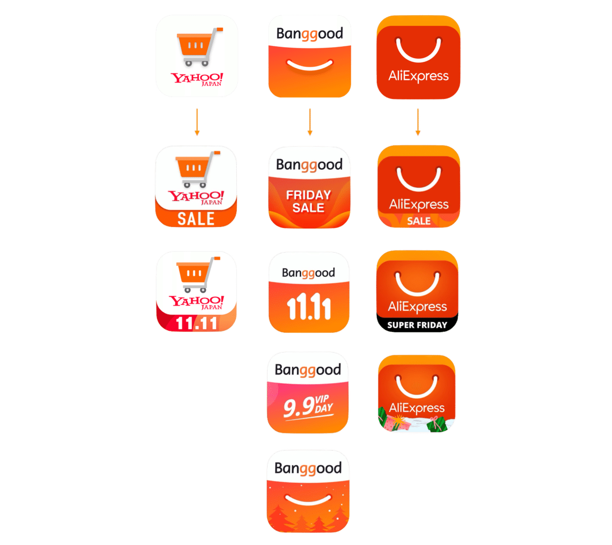 並んだアプリアイコンのイラスト - ONWAイラスト。