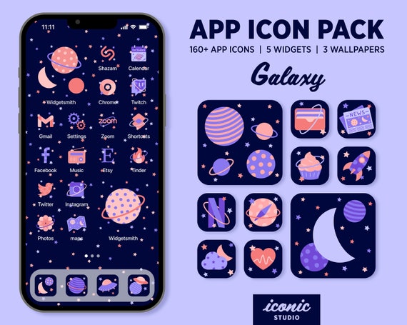 Galaxy アプリアイコンパック: 天体 iOS & Android テーマデジタルダウンロード- Etsy 日本。